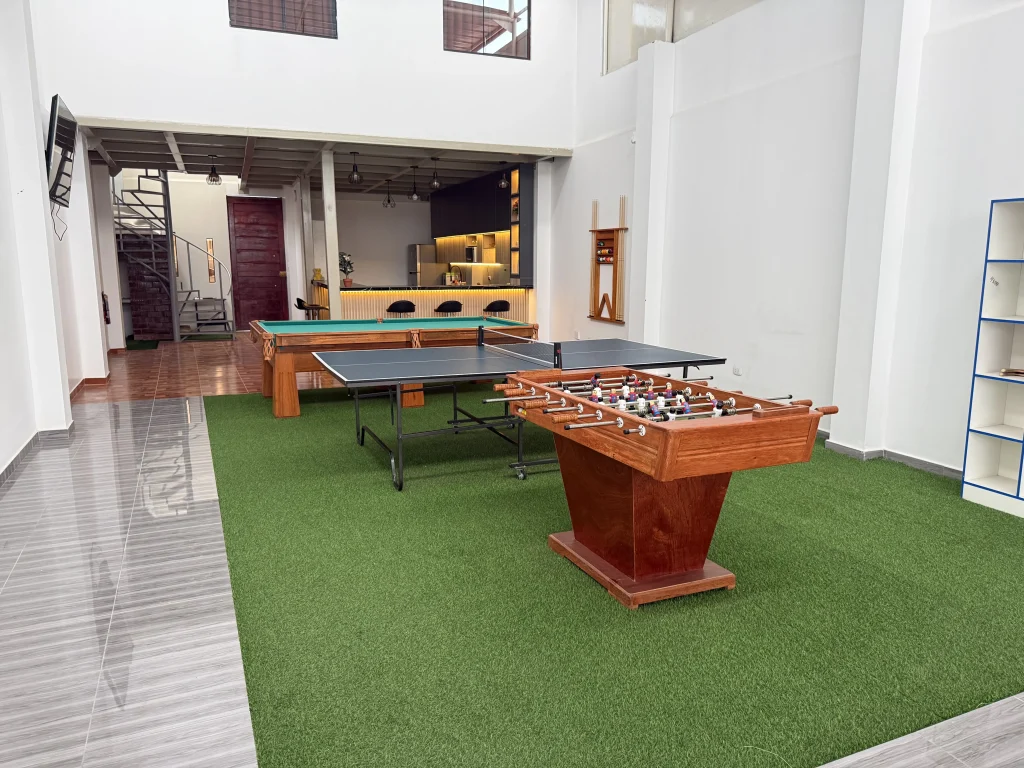 El espacio privado perfecto para cumpleaños, bautizos o integraciones corporativas en Barranca. Olvídate de alquilar salones fríos; aquí disfrutas de una zona de parrilla, cocina-bar equipada y salón de juegos (billar, fulbito y ping pong) solo para tu grupo.