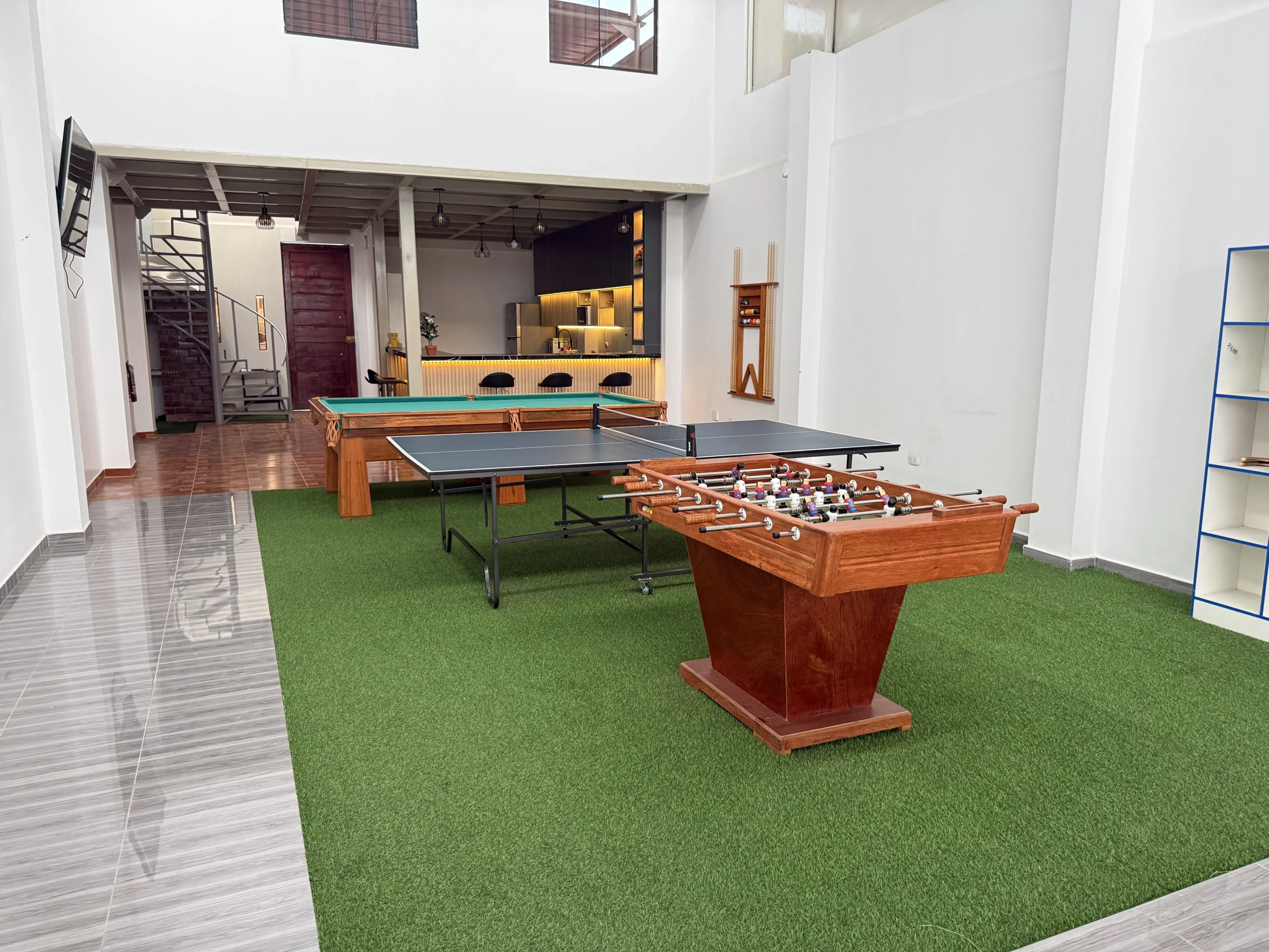 Diversión sin salir de casa. Billar, fulbito de mano y ping pong listos para usar en cualquier momento; ideal para las noches o tardes libres.
